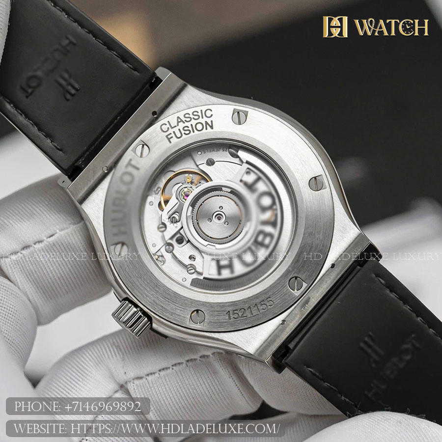 Movement: Powering the HBL Classic Fusion is the in-house HUB1110 or HUB1150 self-winding mechanical movement, based on a Swiss high-precision caliber. Operating at 28,800 vph with a 42-hour power reserve, it offers reliability and performance suited for both daily wear and refined occasions. Through the transparent sapphire caseback, the oscillating rotor—engraved with the HBL insignia—showcases clean finishing and modern mechanical architecture, embodying the fusion of innovation and tradition.
