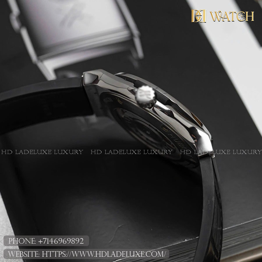 Features: 42 mm or 45 mm case in titanium, King Gold, or ceramic; sapphire crystal front and back; automatic movement (HUB1110/HUB1150); 42-hour power reserve; water resistance up to 50 m; and interchangeable strap options.