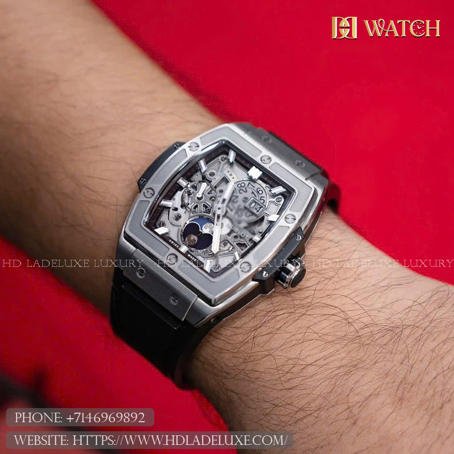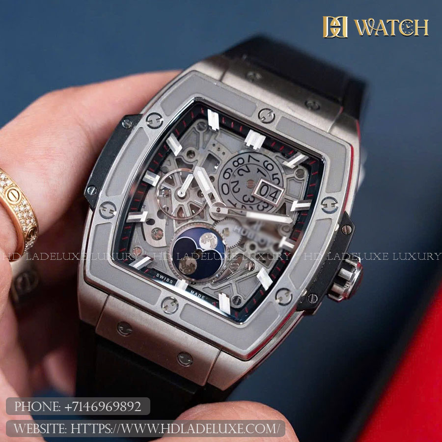 Style & Versatility: The HBL Spirit of Big Bang Moonphase embodies the essence of modern haute horlogerie—bold, innovative, and meticulously detailed. It bridges the worlds of technical performance and refined aesthetics, making it suitable for both avant-garde collectors and everyday connoisseurs of fine watchmaking. Whether paired with a tailored suit or minimalist streetwear, it commands attention with confidence and sophistication, standing as a true emblem of fusion between art, mechanics, and contemporary style.
