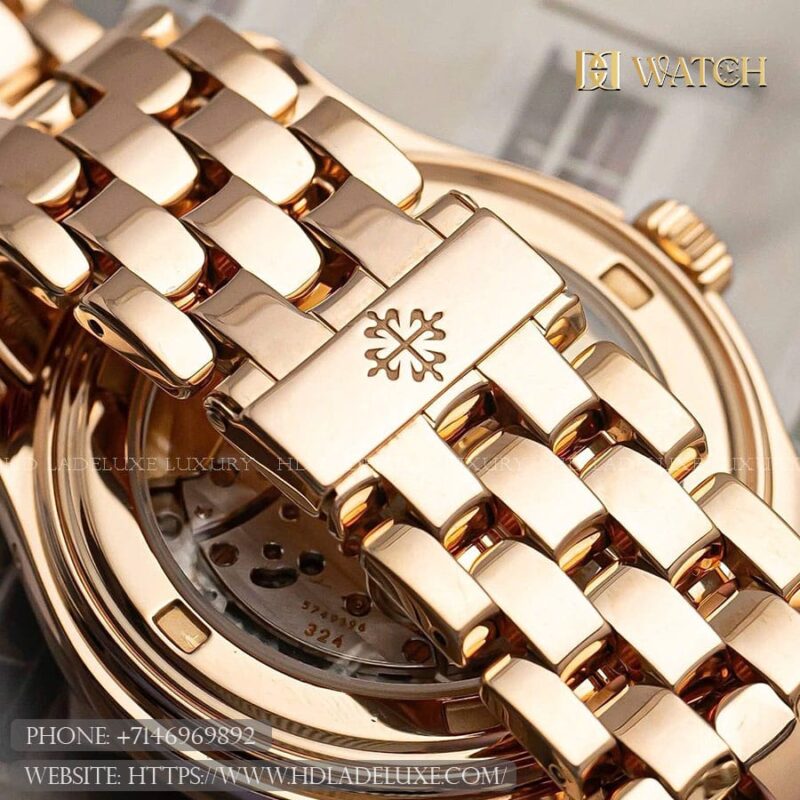 Bracelet: The watch is paired with a beautifully crafted 18k rose gold link bracelet, blending polished and brushed finishes for a refined contrast. The integrated design ensures a seamless transition from case to wrist, while the folding clasp provides a secure and comfortable fit, enhancing the watch’s luxurious yet practical nature.