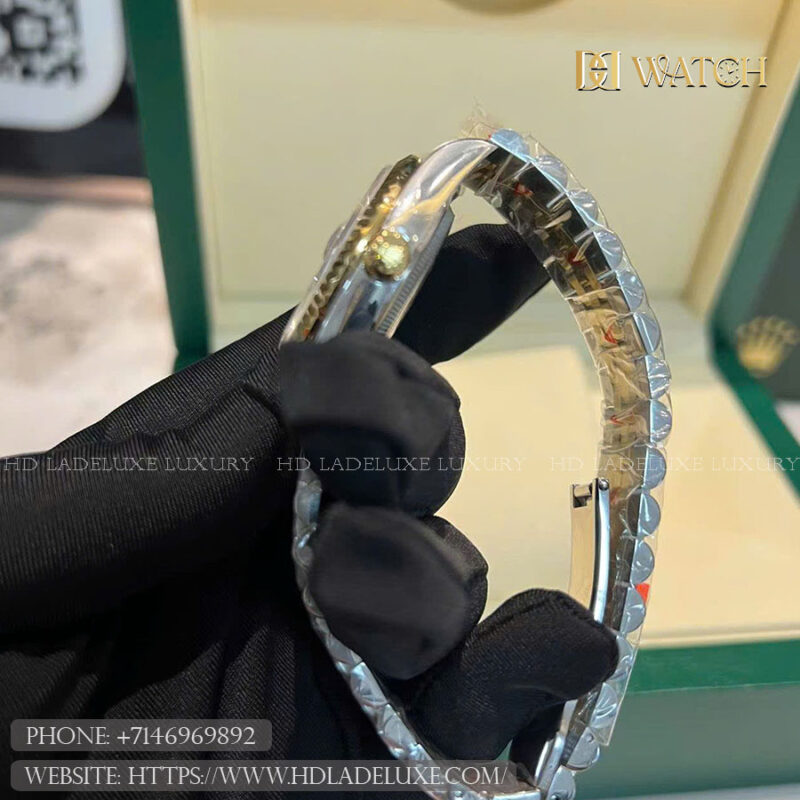Dial & Display: The Datejust’s dial is celebrated for its extraordinary variety, available in classic hues like silver, champagne, and black, as well as vibrant shades of green, blue, or mother-of-pearl. Applied Roman numerals, baton indexes, or diamond hour markers—crafted in 18k gold—enhance sophistication. At 3 o’clock, the signature date display with Cyclops lens provides legibility at a glance, while luminous details ensure readability under all conditions.
