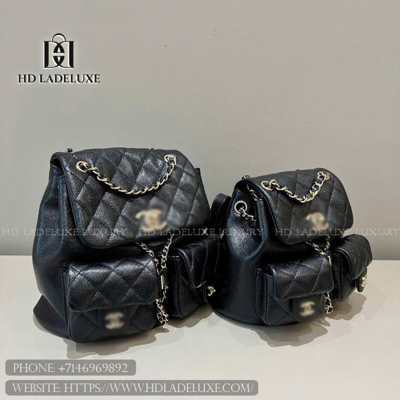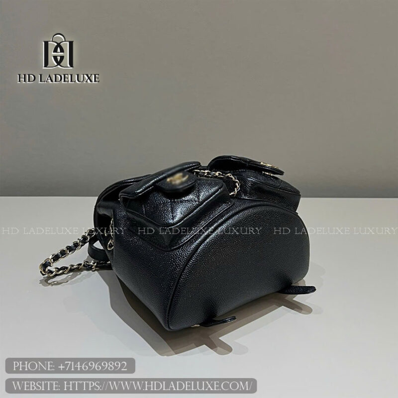Material: The CC 23P Backpack is beautifully crafted from supple diamond-quilted lambskin, renowned for its smooth texture, natural luster, and elegant softness. The fine-grain surface gives the bag a refined appearance while maintaining resilience for everyday use. Accented with brushed gold-tone hardware—including the signature interlocking CC clasp and eyelet chain details—the piece radiates classic charm and subtle opulence. The interior is lined with smooth leather in a tone-on-tone finish, ensuring both luxury and practicality. Each stitch, seam, and edge is executed with precision, reflecting CC’s unwavering dedication to craftsmanship and timeless beauty.