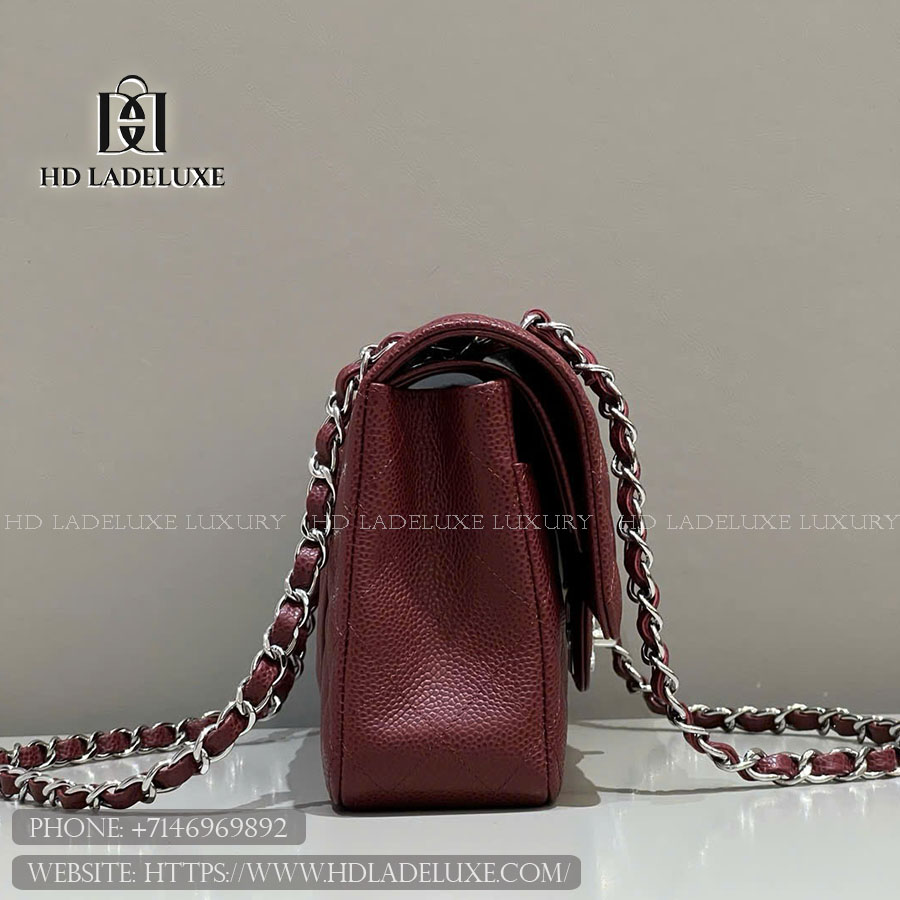 Material: The CH CC CF25 is masterfully handcrafted from the house’s renowned diamond-quilted lambskin — a material celebrated for its soft, buttery touch and subtle sheen that radiates quiet luxury. Each panel is precisely cut and stitched by skilled artisans to preserve the bag’s flawless symmetry. The quilted texture, complemented by light-gold hardware, exudes timeless allure while maintaining everyday durability. The interlocking CC clasp gleams with a polished finish, contrasting beautifully against the supple leather. Inside, the bag features a smooth leather lining with color harmony that enhances its refinement, while the edges are meticulously hand-painted for a seamless, enduring finish that resists wear over time.
