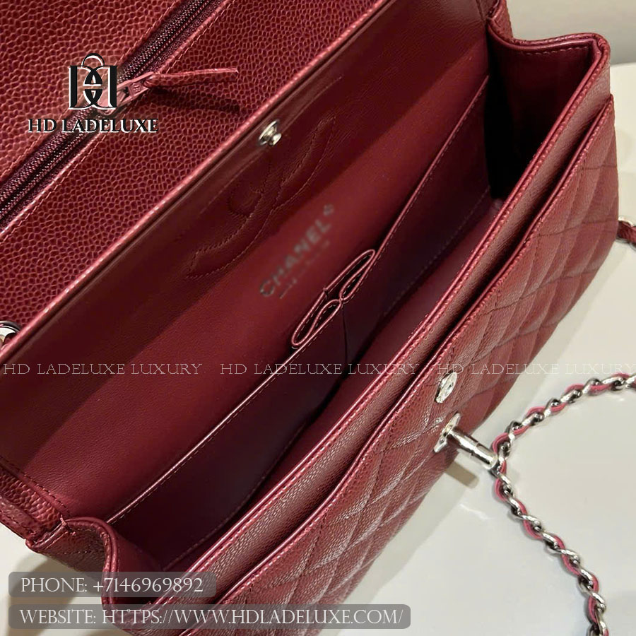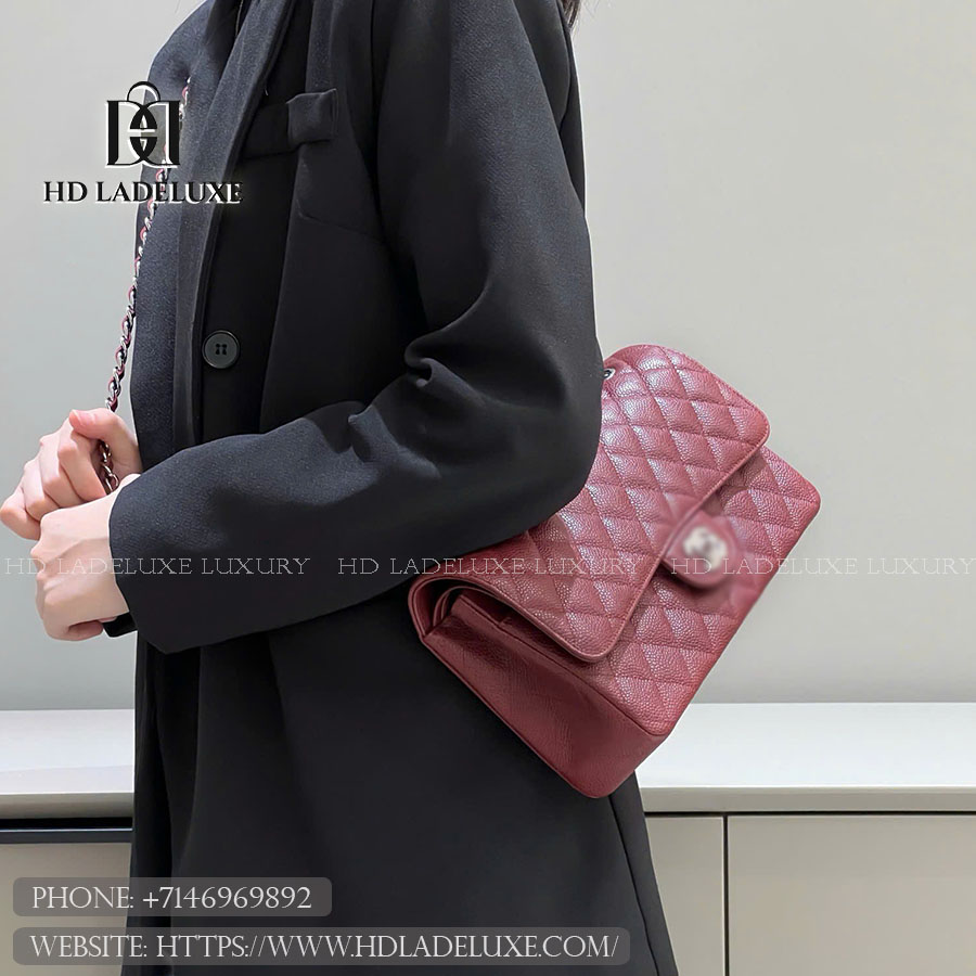Design: The CC CF25 embodies the essence of CH’s legendary flap silhouette in a perfectly balanced medium size of approximately 25 cm. Its double-flap construction provides structure, elegance, and added protection for essentials. The first flap, adorned with the signature CC turn-lock, opens to reveal a second flap for enhanced security, both crafted to glide effortlessly with each movement. The leather-woven chain strap offers multiple styling possibilities — wear it crossbody for effortless chic, single-shoulder for refined daywear, or doubled for an elegant evening statement. Inside, intelligently designed compartments — including a zip pocket, slip pockets, and a lipstick holder — maintain organization without sacrificing sophistication. Every element, from the curved edges to the symmetrical quilting, reflects CH’s dedication to timeless craftsmanship and design harmony.