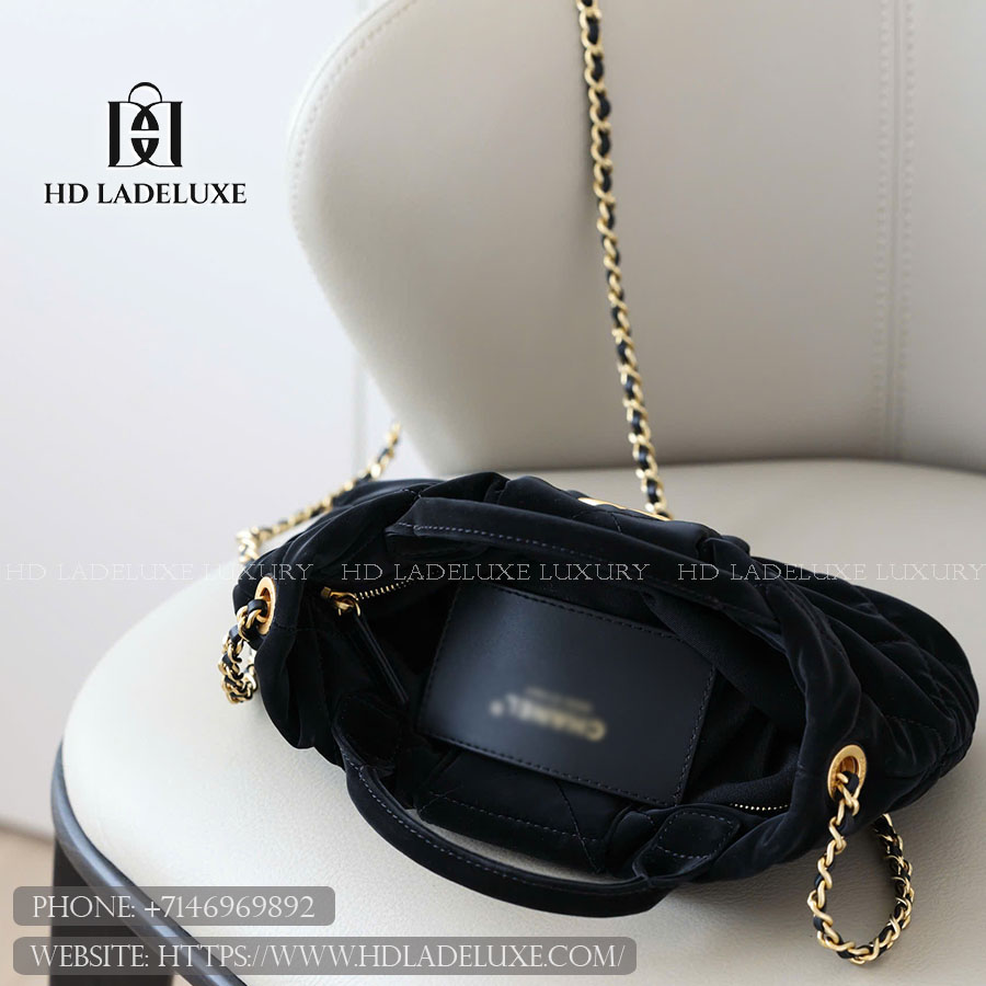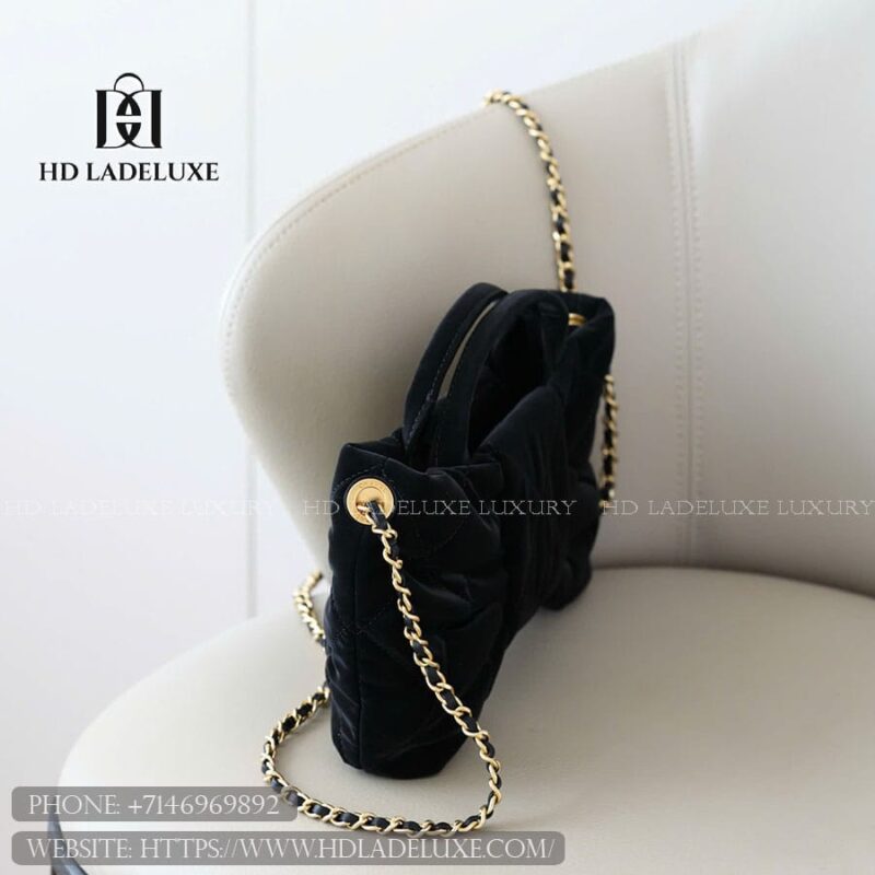 Material: The CC Ready-to-Wear 25K bag is beautifully crafted from the maison’s signature diamond-quilted lambskin, renowned for its velvety softness, subtle sheen, and impeccable texture. The luxurious leather is complemented by brushed gold-tone hardware, giving the piece a warm radiance that enhances its sophisticated allure. Its smooth interior lining echoes the exterior tone for a harmonious aesthetic, while reinforced stitching and precisely cut panels ensure exceptional durability and structure. This exquisite combination of supple leather and refined craftsmanship captures the timeless spirit of CC—elegant, tactile, and undeniably feminine. Each piece is hand-finished, making it as much a collector’s item as a functional statement accessory.