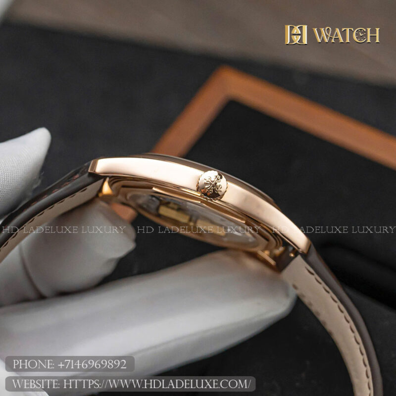 Case & Material: The PP Calatrava 6000R-001 is a refined expression of understated luxury, crafted from 18k rose gold and measuring 37 mm in diameter. Its slender, round case embodies the timeless design language of the Calatrava collection, characterized by clean lines, polished surfaces, and classic proportions. The slim profile and gently curved lugs ensure exceptional comfort on the wrist, while a sapphire crystal and solid caseback guarantee durability and elegance. Water resistance of 30 meters further enhances its everyday practicality without compromising its dress-watch identity.