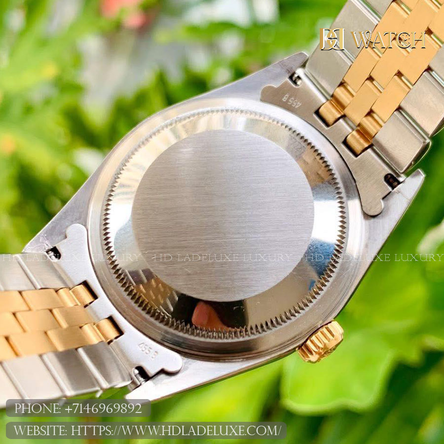 • Case & Material: The RL Datejust 16233 features a 36mm case crafted in a combination of Oystersteel and 18k yellow gold, creating a refined two-tone Rolesor aesthetic. The iconic fluted bezel in solid yellow gold captures light beautifully, while the Oyster case construction ensures water resistance up to 100 meters. A screw-down caseback and Twinlock crown provide both robustness and enduring elegance.