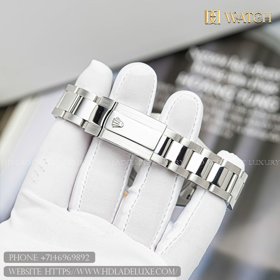 At its heart beats the self-winding caliber 3235—RL’s next-generation movement certified as a Superlative Chronometer. Engineered for accuracy and endurance, it incorporates the Chronergy escapement, Parachrom hairspring, and Paraflex shock absorbers. This high-efficiency mechanism provides a 70-hour power reserve while maintaining exceptional precision under diverse conditions. The perpetual rotor ensures seamless energy transmission, keeping the movement charged through daily wear.